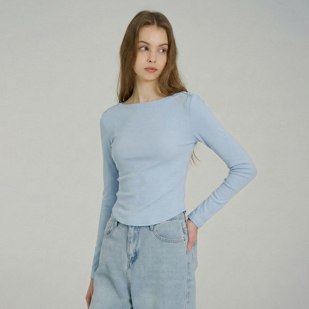[ab.plus] 보트넥 슬림 라인 디테일 티셔츠 (LSA5MK33A)