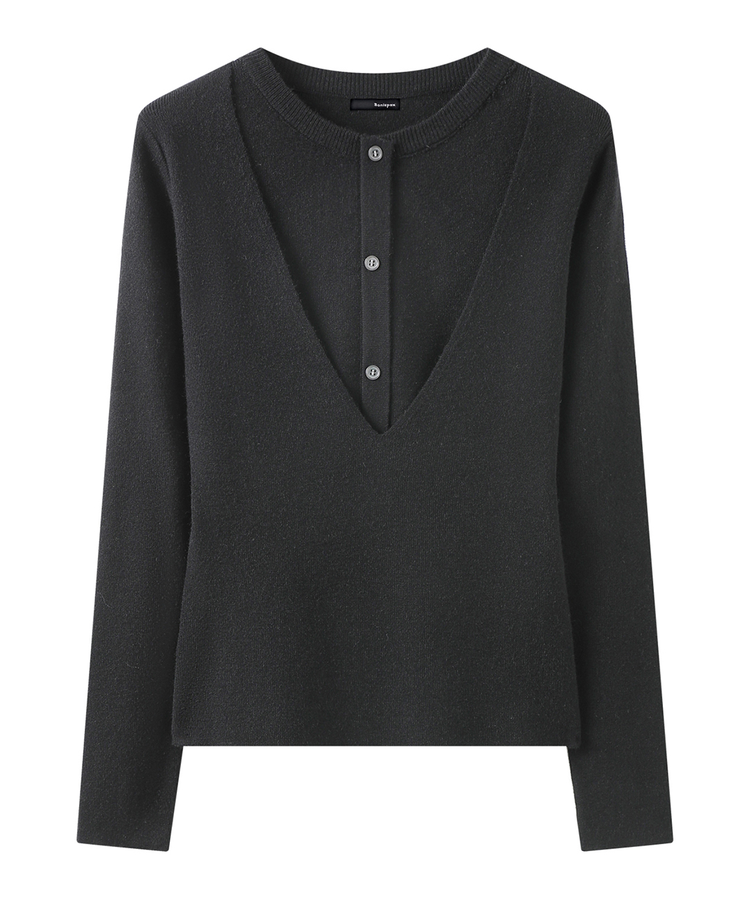 레이어드 라운드 데일리 긴팔 니트 (XQ1KT003L0)