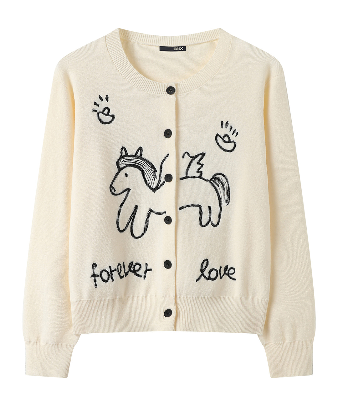 드로잉 유니콘 자수 니트 가디건 (BY1CD007L0)