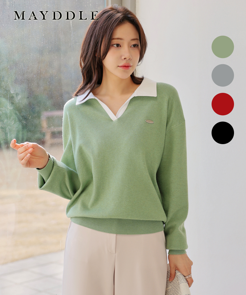 호픈무지 셔츠 카라니트 / 카라브이넥니트 출근니트 직장인룩 레드 블랙 그레이 그린 오픈카라니트 셔츠스웨터 팬던트니트 간절기 봄니트 시보리니트 꾸안꾸코디 캐주얼 데일리룩 긴팔니트