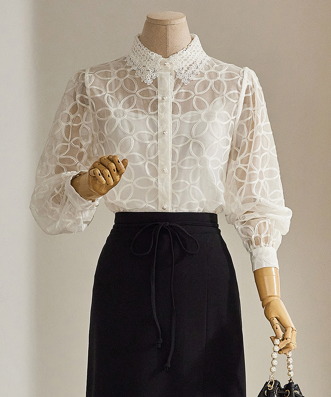 [커스텀에이블] [이너세트]레이스 카라 시스루 블라우스_T2601BL004A
