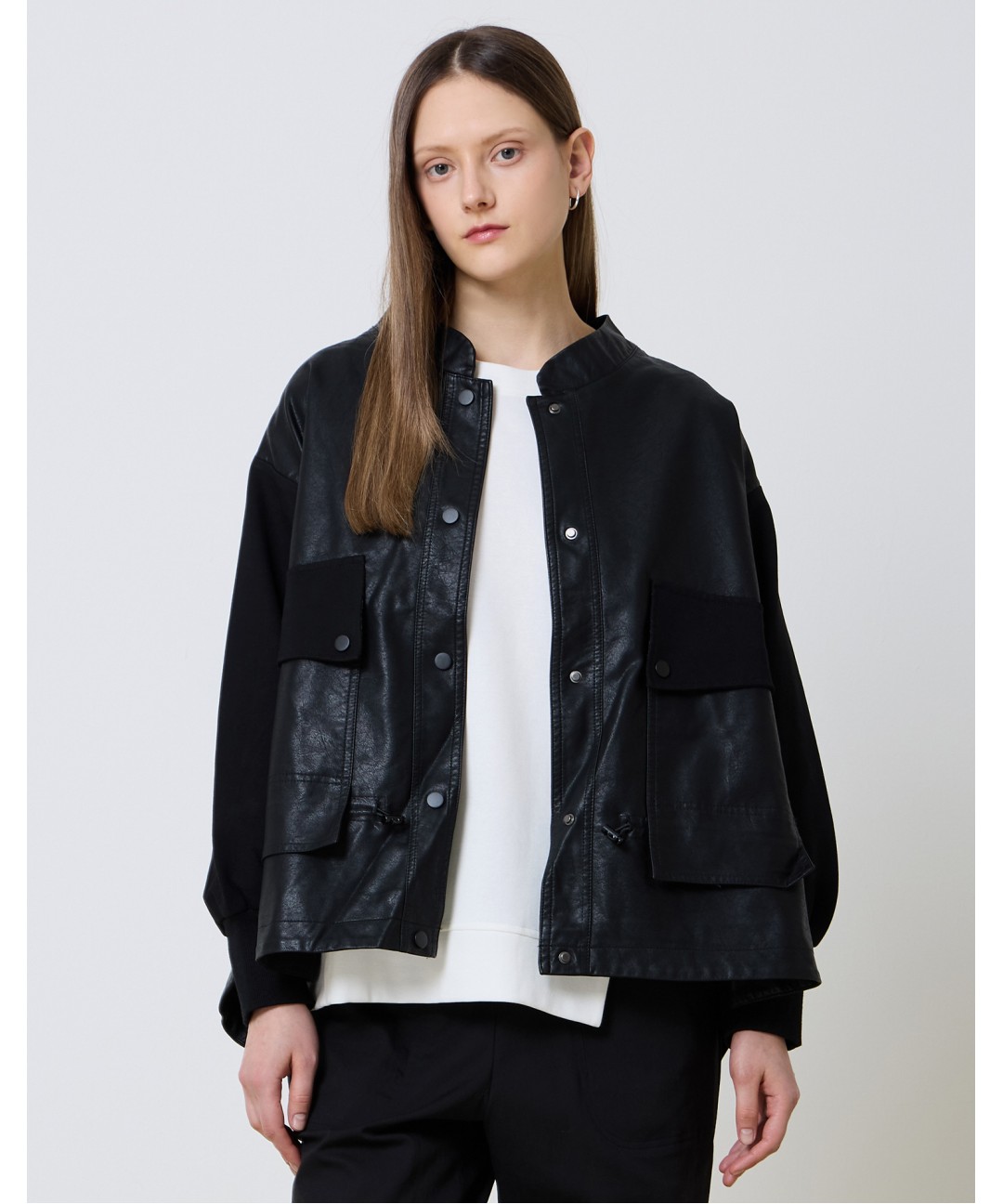 [독점가] 저지 배색 레더 자켓-BF18LJ030