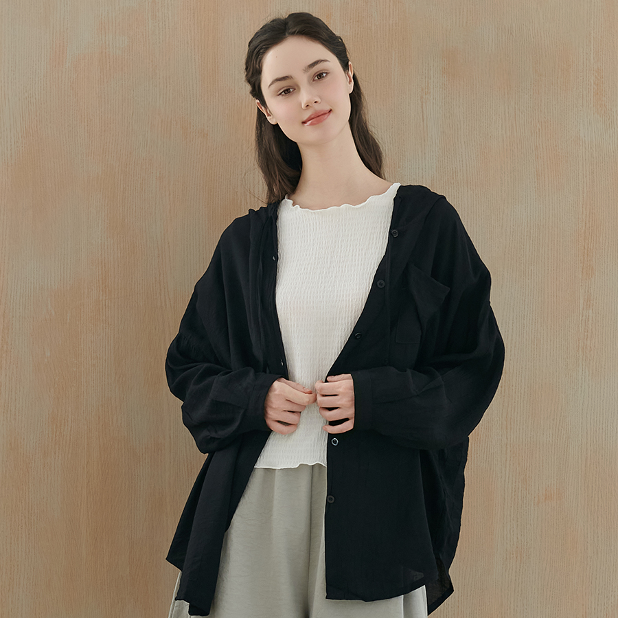 [26 신상] 루즈핏 후드 시스루 셔츠 (VMBAD2442)