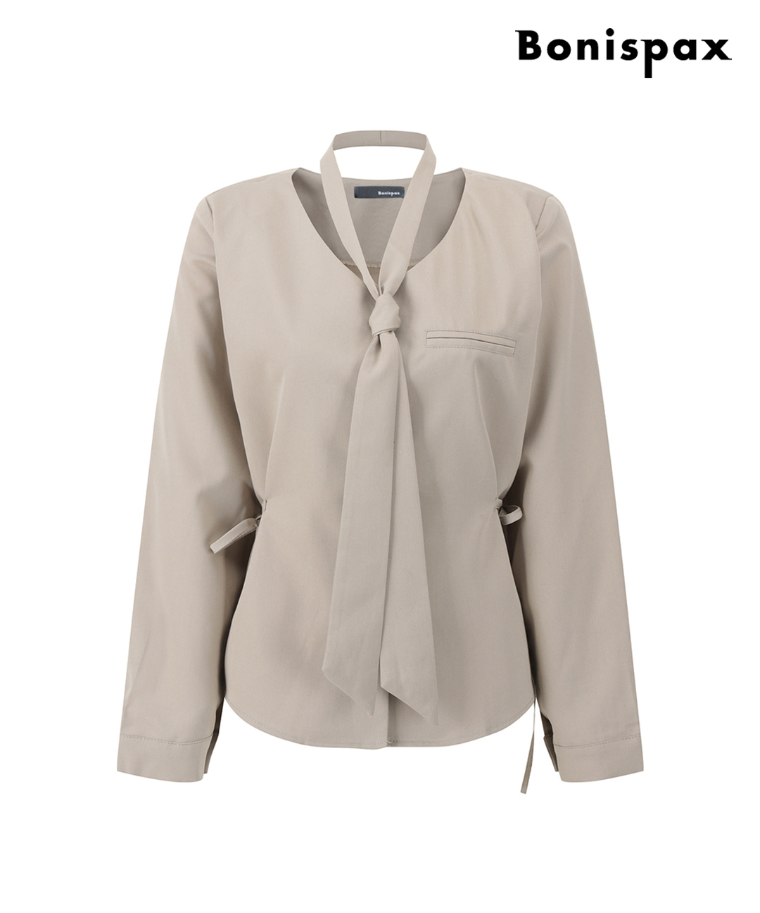 [보니스팍스] 타이 세트 V넥 스트랩 리본 블라우스 (XQ1SH002M0)