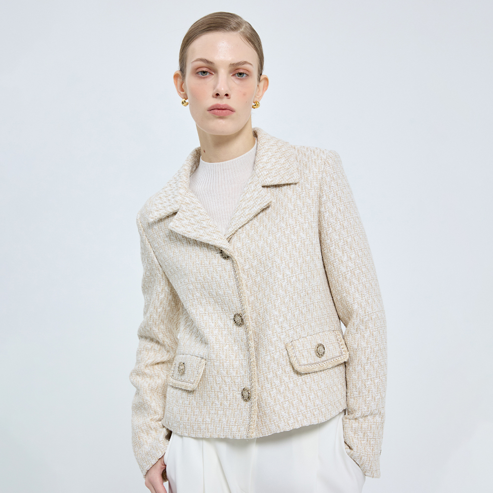 [데코] (본사직영) 메탈 트위드 숏 자켓-DCJKD1105W
