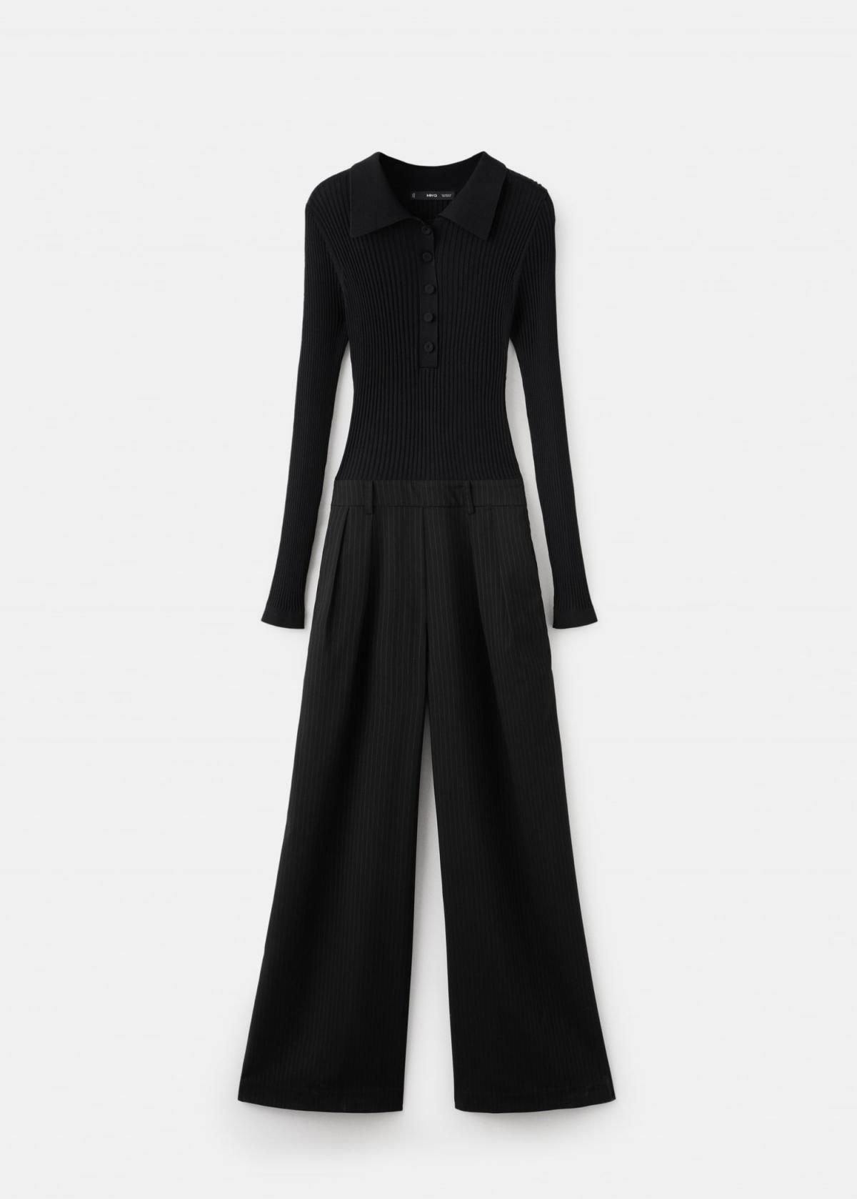 망고 블랙 콤비 롱 와이드 점프수트 27034086_99 NEGRO