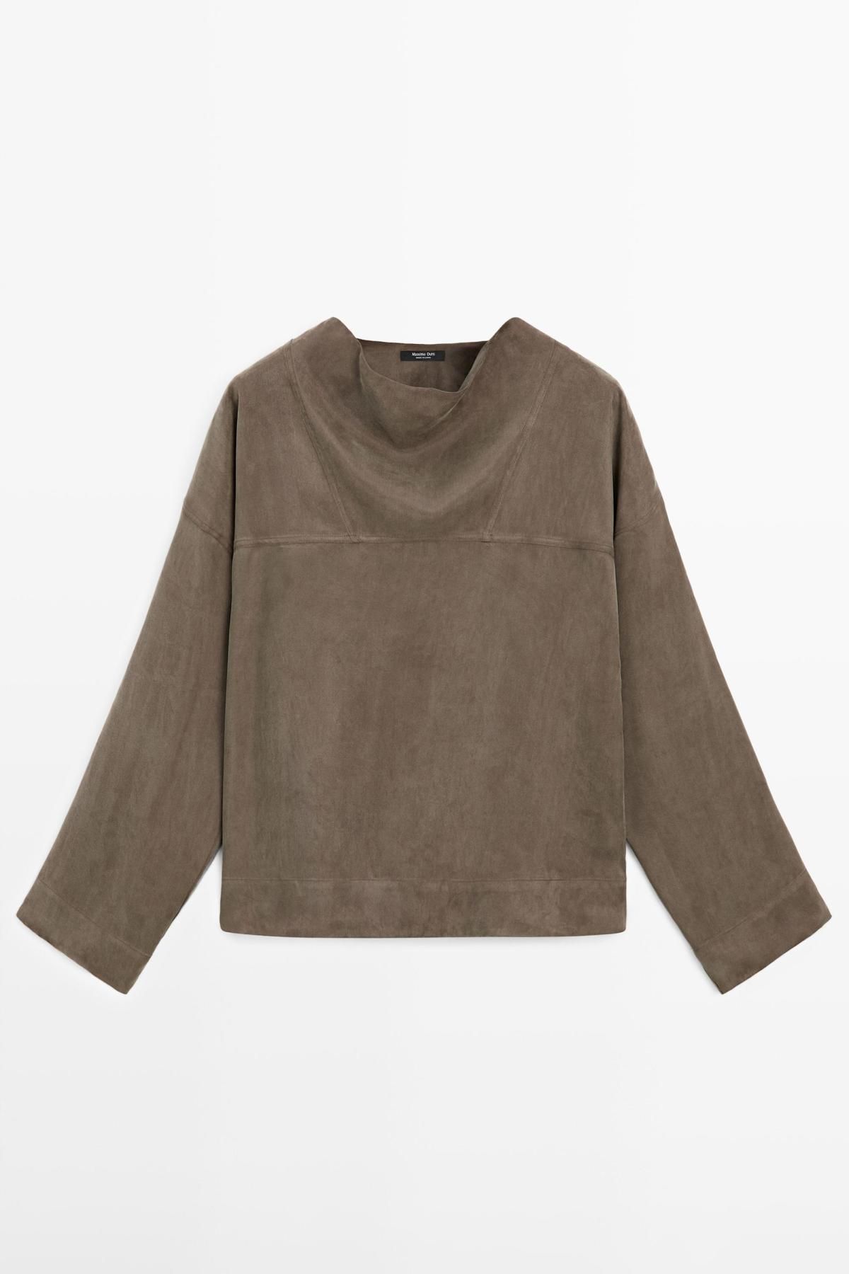 마시모두띠 드레이프넥 루즈핏 스웨이드 셔츠 5110/510 BROWN