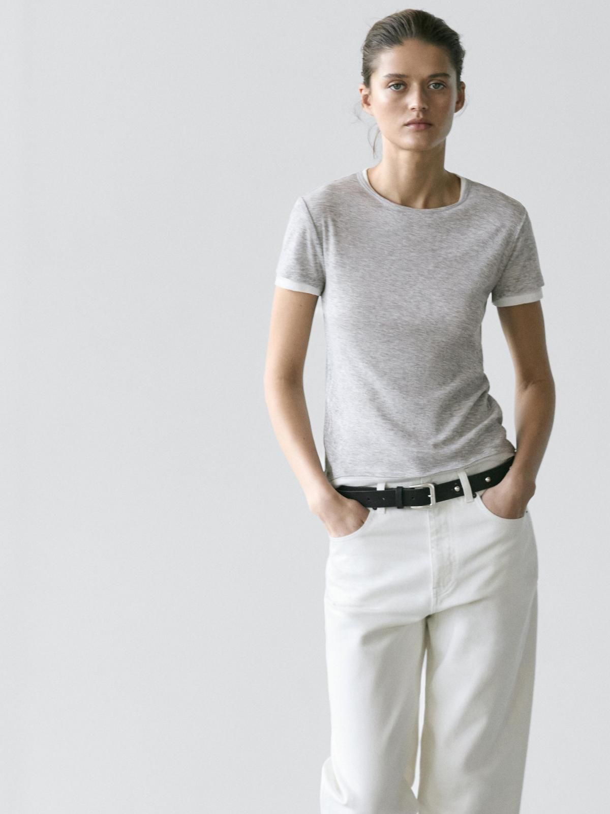 마시모두띠 그레이 더블 트림 반팔 티셔츠 6899/116 GREY