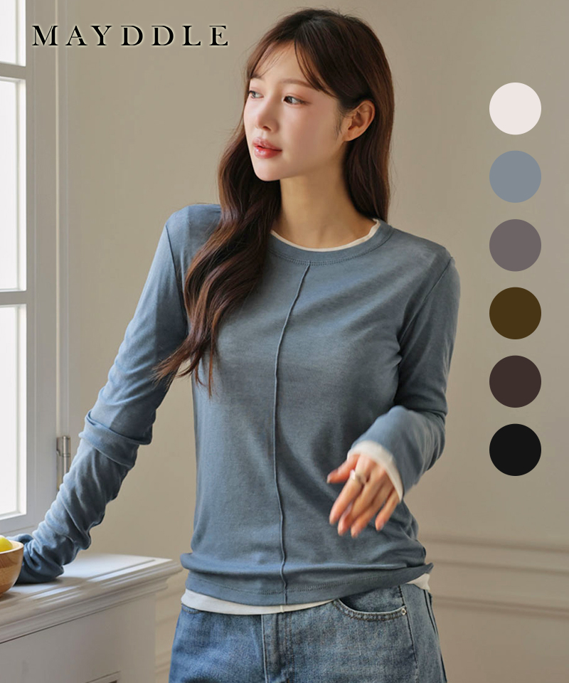 리오셀울핀턱 슬림 라운드티 / 슬림핏이너레이어드티 여리핏티셔츠 라운드넥기본티 그레이 카키 아이보리 소라 브라운 블랙 여성긴팔티셔츠 봄 간절기코디 얇은티셔츠 신축성 스판티