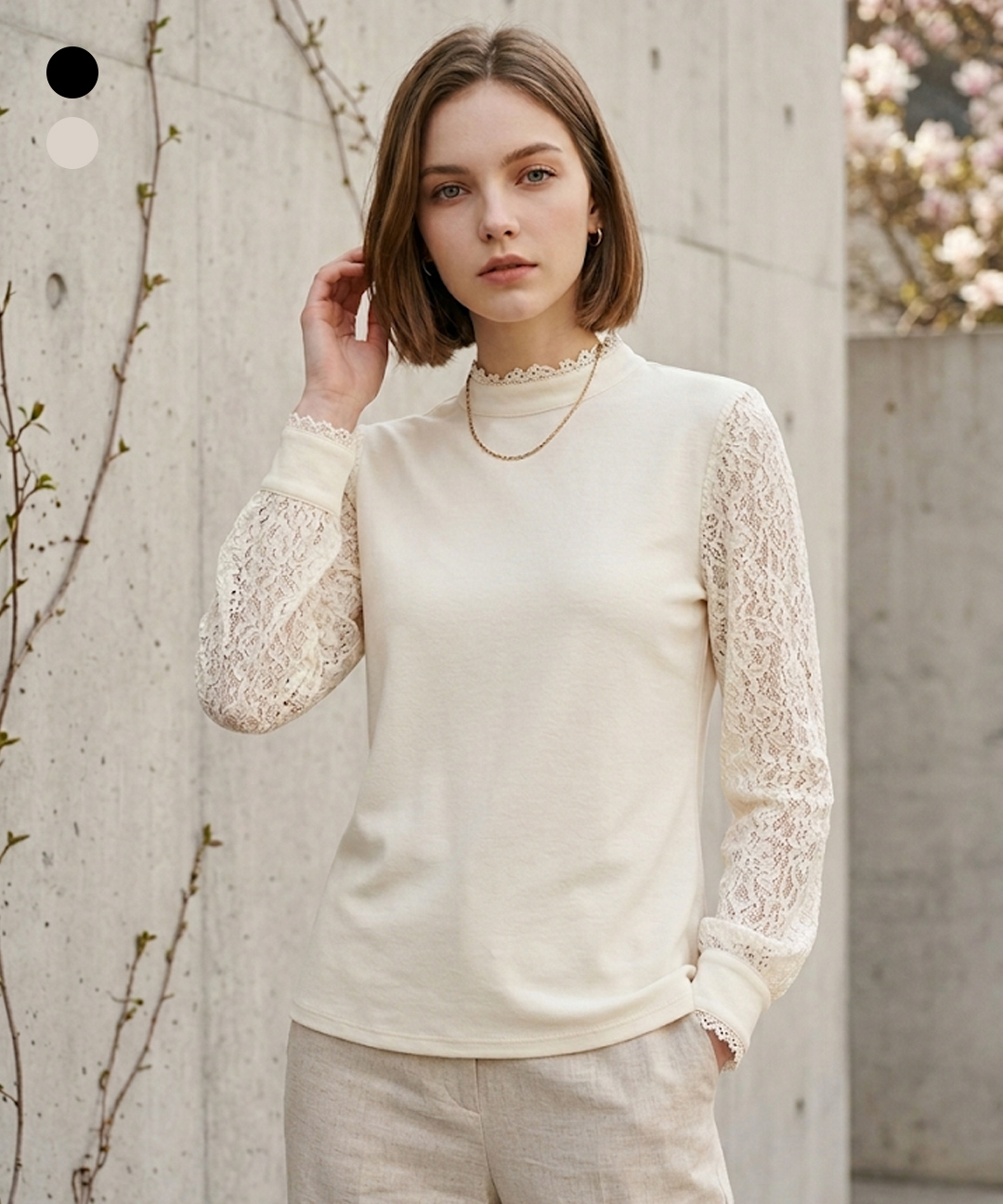 샤트렌 소배 레이스 배색 디자인 티셔츠_HCCSTS101