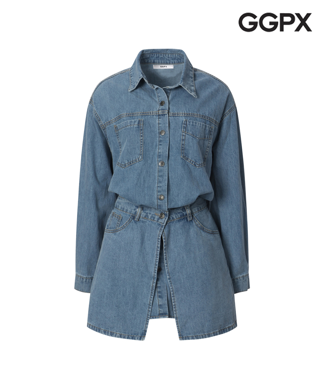 [GGPX] 랩 세트 데님 미니 원피스 (GQ1ST012B)