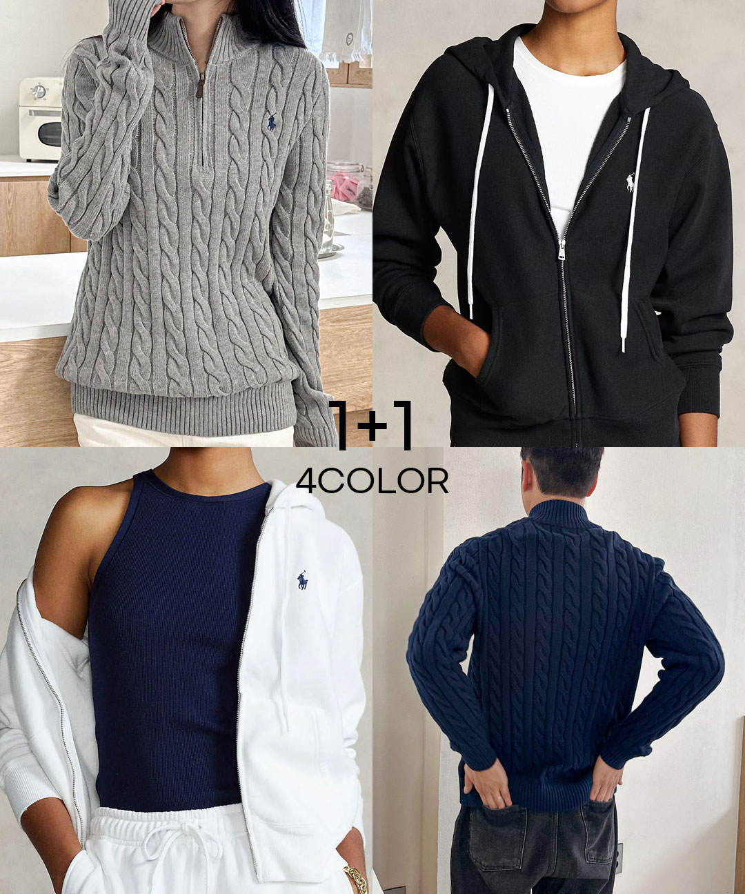 [1+1] [폴로] 여성 남성 꽈배기 반집업 코튼 / 풀 지퍼 후디 균일가 모음전