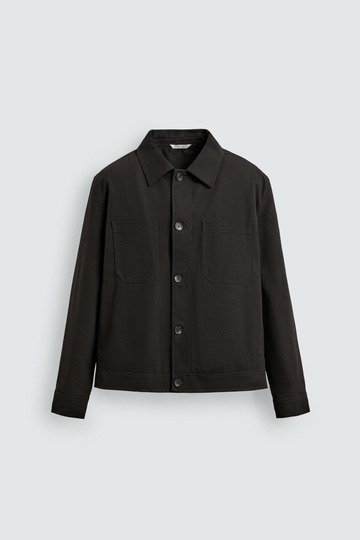 자라 테크니컬 퀼팅 캔버스 오버셔츠 1437/311/717 CHOCOLATE