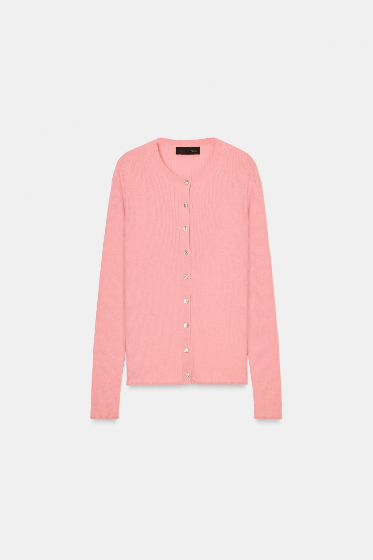 자라 100울 라운드넥 리브드 가디건 2893/133/620 PINK