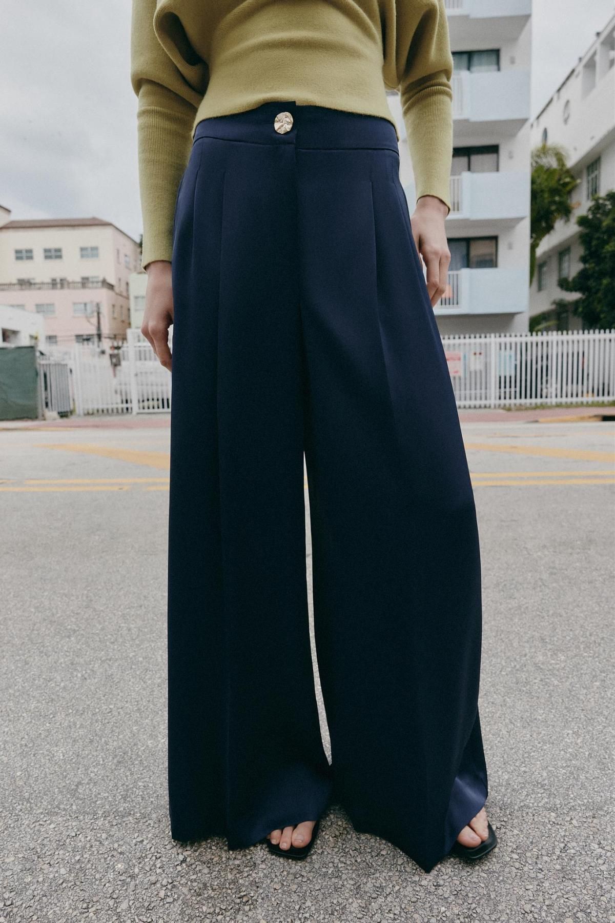 자라 하이웨이스트 새틴 와이드 팬츠 2211/608/401 NAVY BLUE