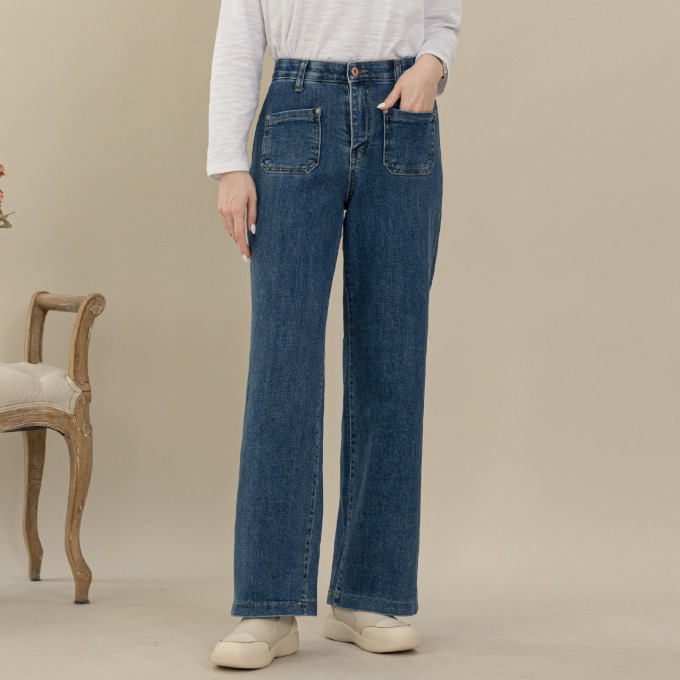 [디얼마미] 봄비 히든 통 데님팬츠 /마담 미시 중년 여성 빅사이즈 40대 50대