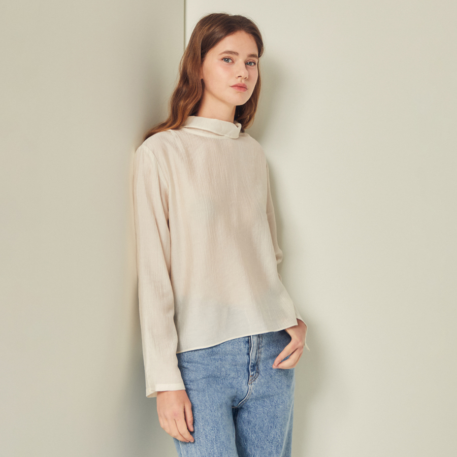 (JJ지고트) 링클 백 리본 하이넥 블라우스 GS2P0BLT11