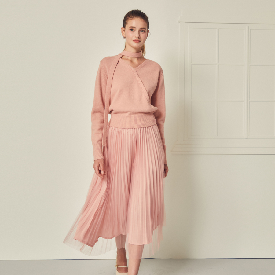 [시즌오프] (JJ지고트) 타이 브이넥 랩 니트 +스커트 세트 GS2P1OP211
