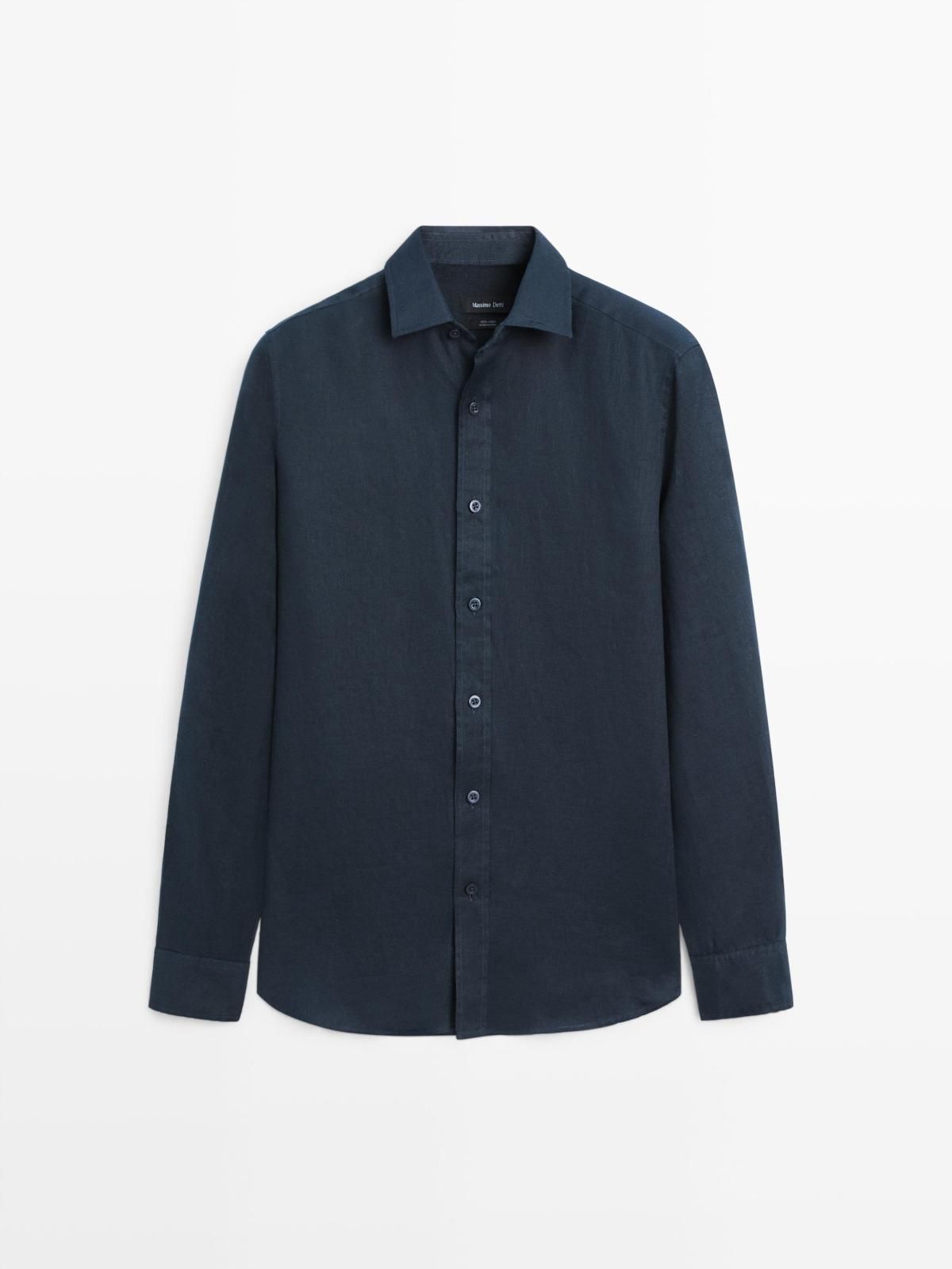 마시모두띠 100 리넨 긴팔 셔츠 레귤러핏 1927/260 NAVY BLUE