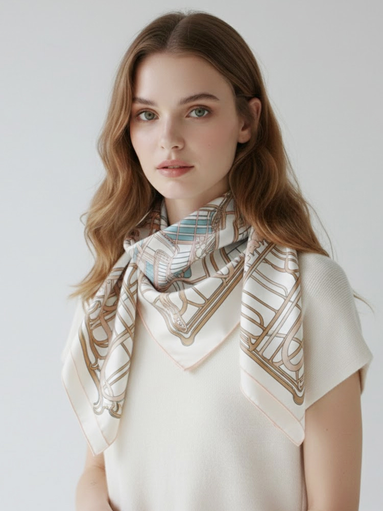 누넬 여성 사각 스카프 유니크 감성 패턴 봄 가을 사계절 머플러 S93