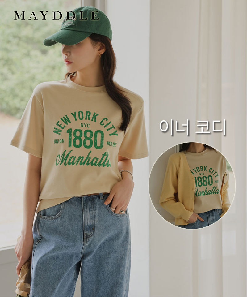 크랙폰트 스판 반팔티 / 영어프린팅 영문폰트 그래픽 라운드넥 이너레이어드 반팔티셔츠 아이보리 그레이 옐로우 네이비 라운드넥반팔티 딸선물 신축성반팔티 캐주얼코디 빈티지반팔티 봄 여름
