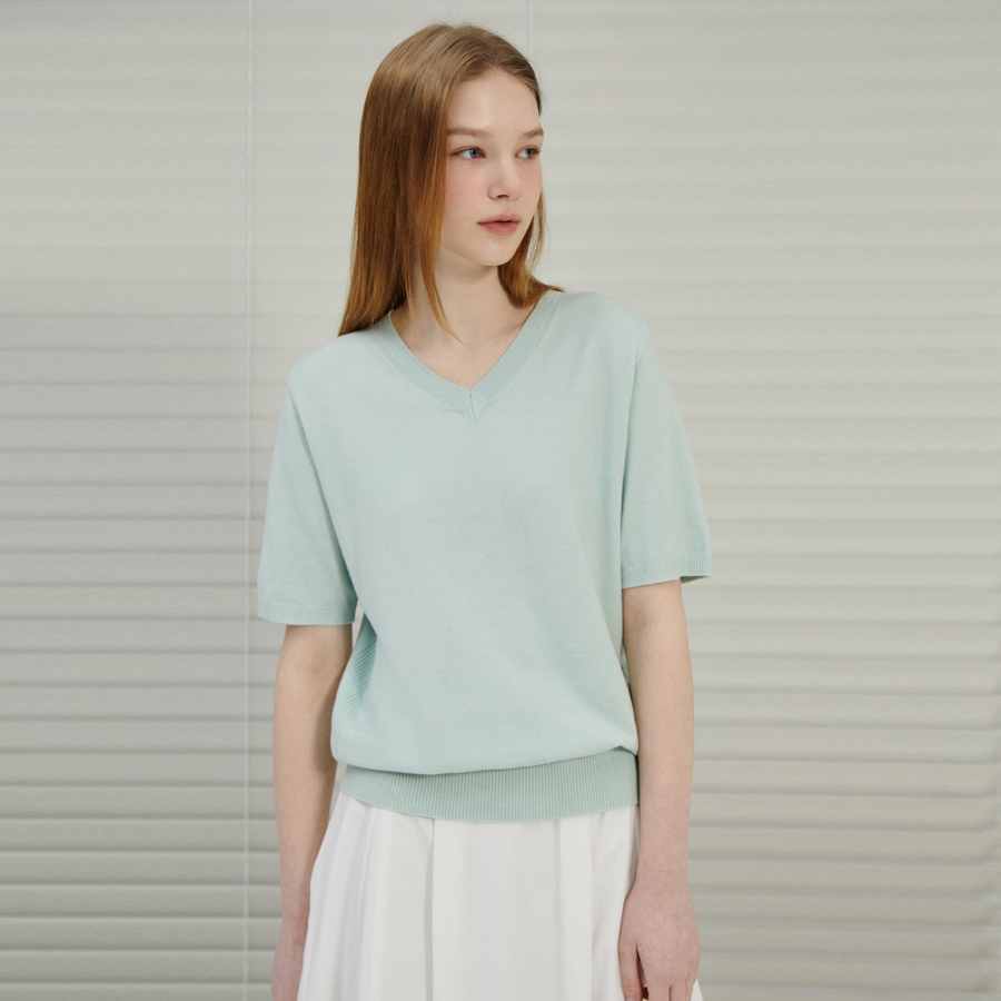 (더아이잗) 하프 슬리브 브이넥 풀오버 니트 IS3M1PO851