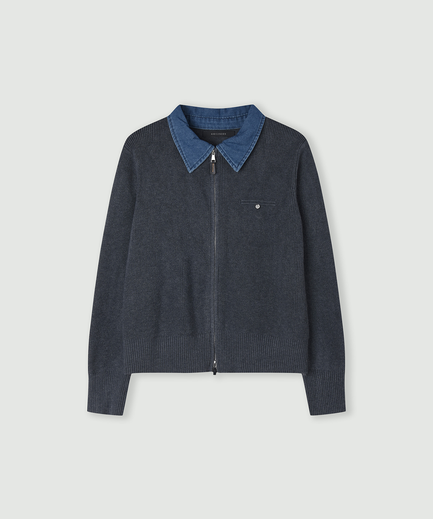 데님카라 집업 가디건_CD6SD617