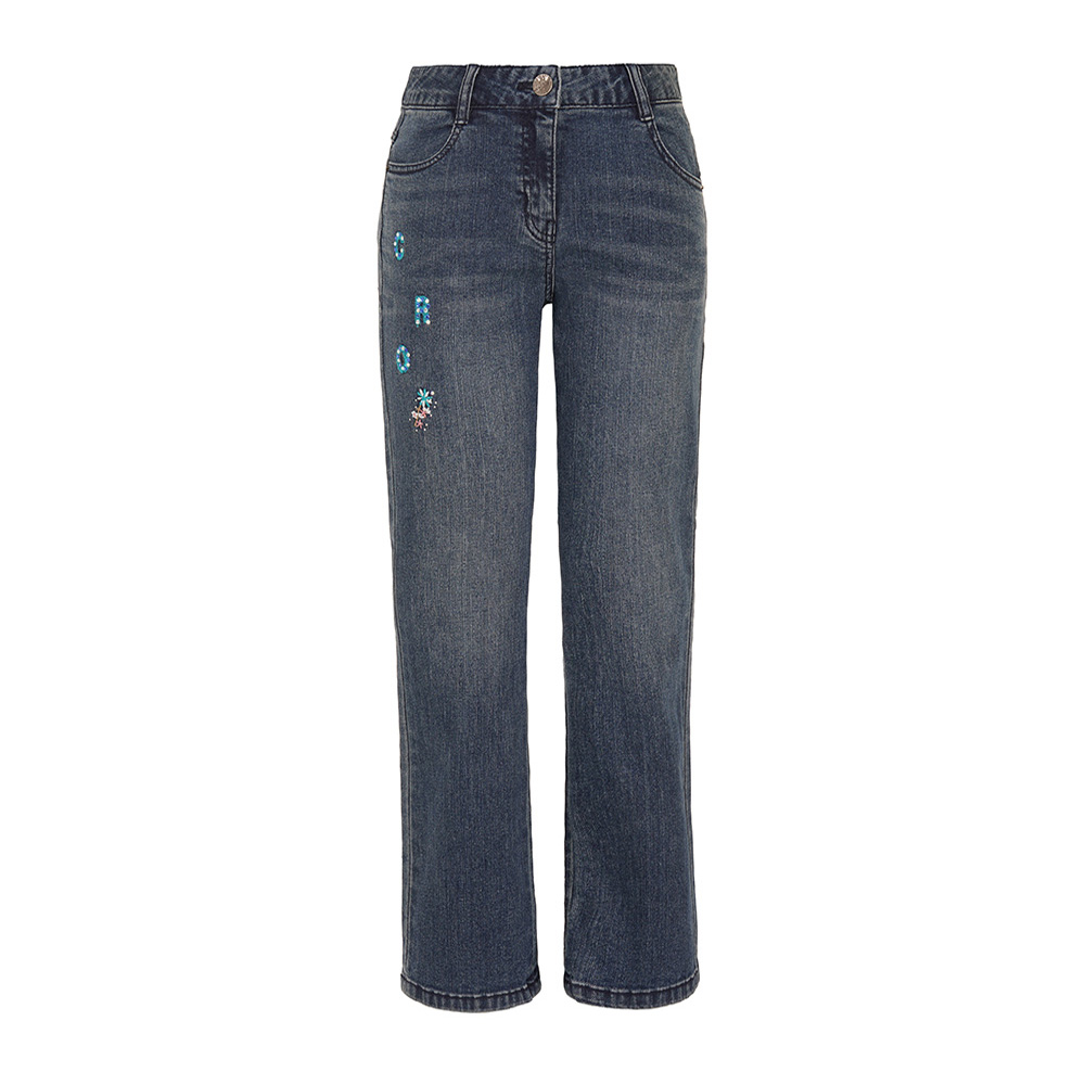 크로커다일레이디 레터링 자수 포인트 스트레이트 데님팬츠_CLCSDP102