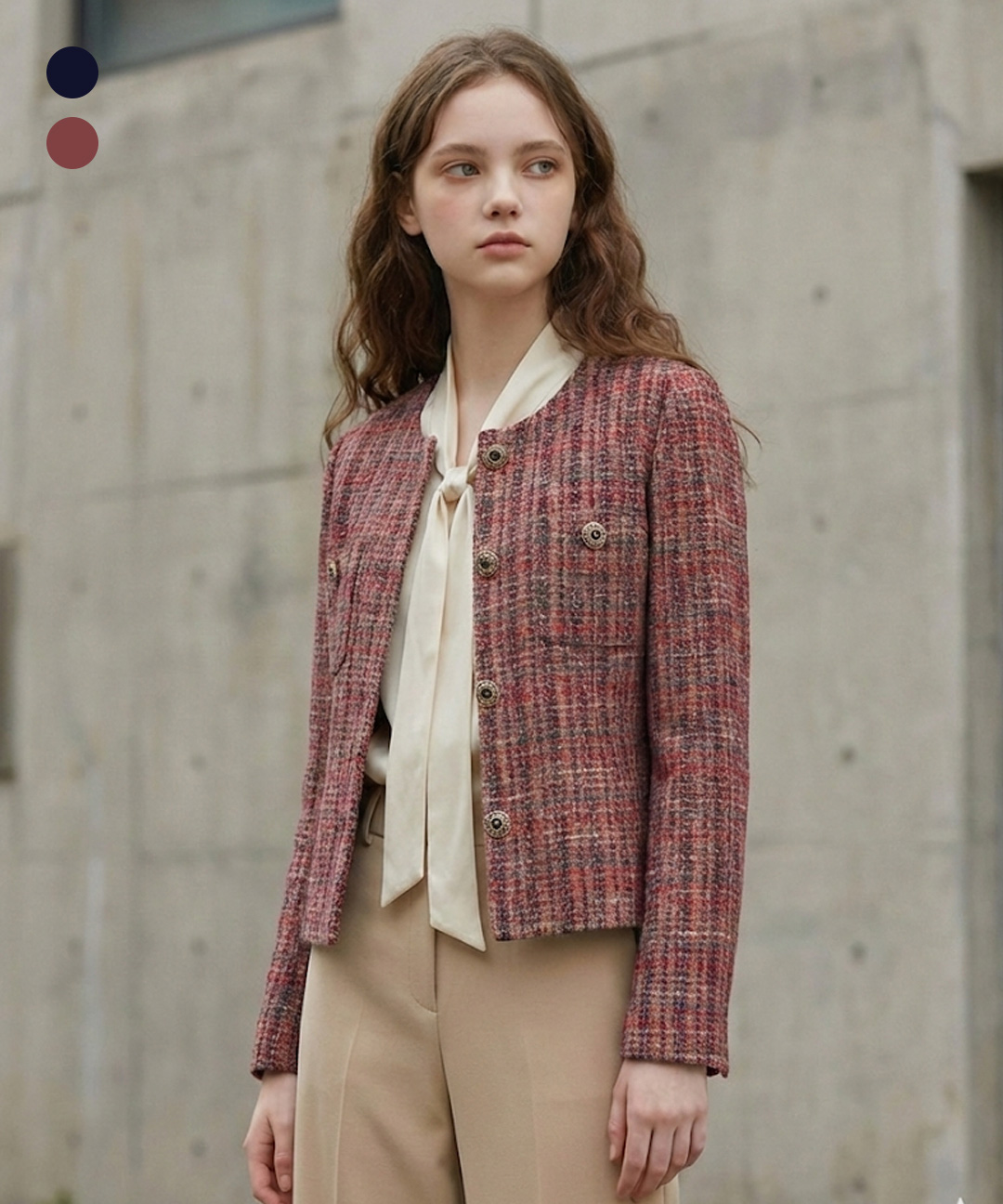 트위드 노카라 크롭 자켓 (BJJAI2107)