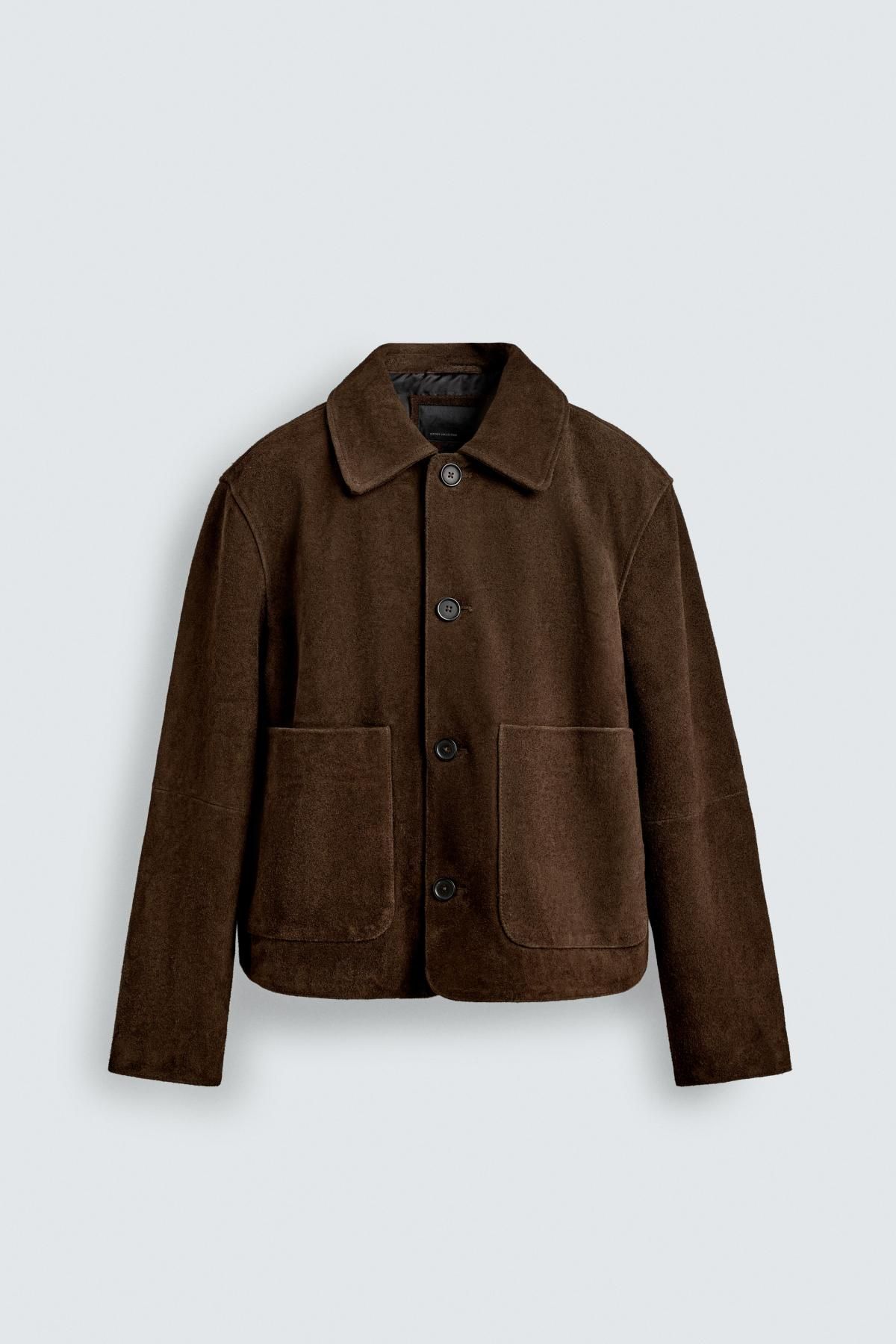 자라 프리미엄 스웨이드 레더 재킷 4416/401/716 DARK BROWN