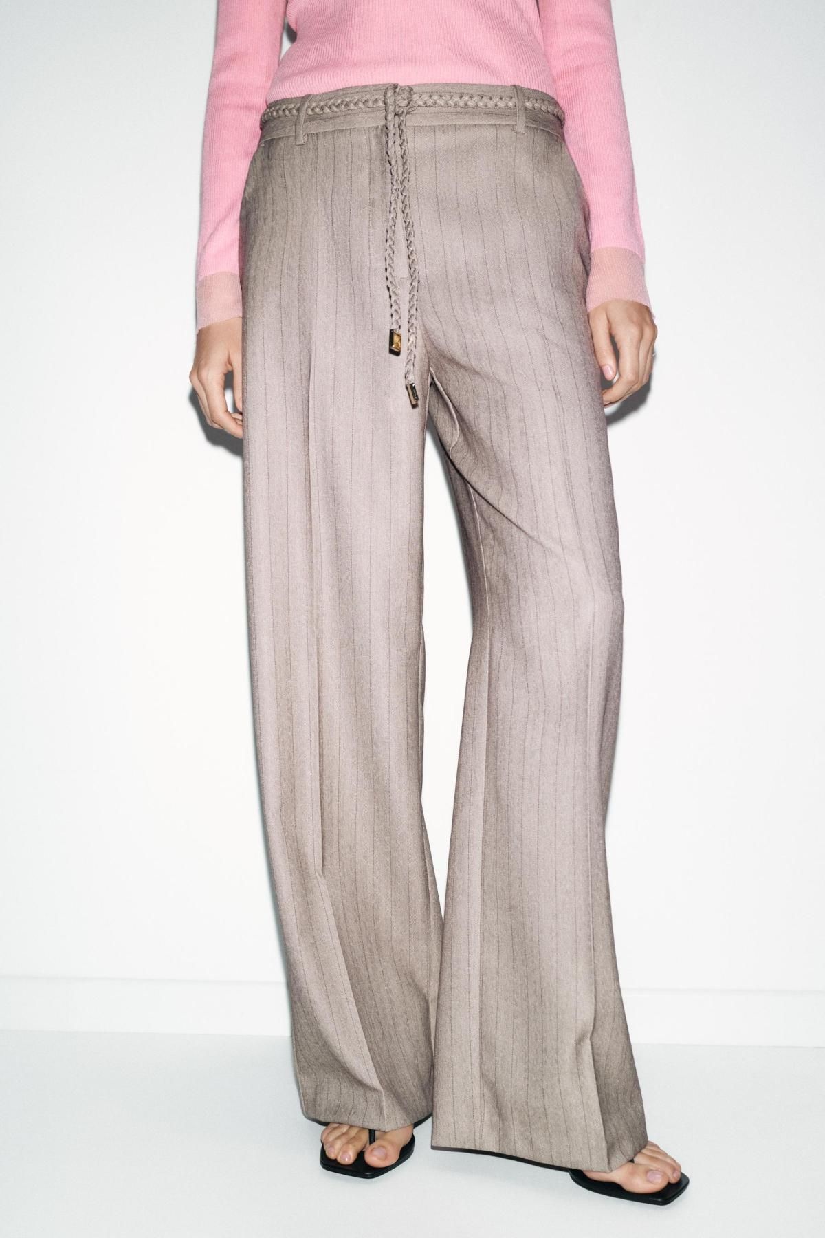 자라 헤링본 브레이드 벨트 와이드 팬츠 4387/163/806 STONE
