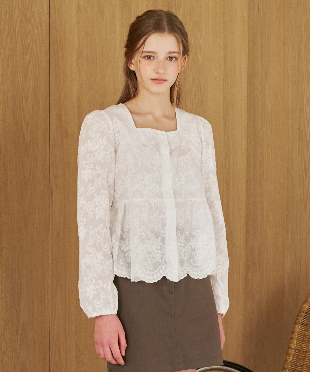 플라워 펀칭 스퀘어넥 블라우스 (DQ1BA015A)