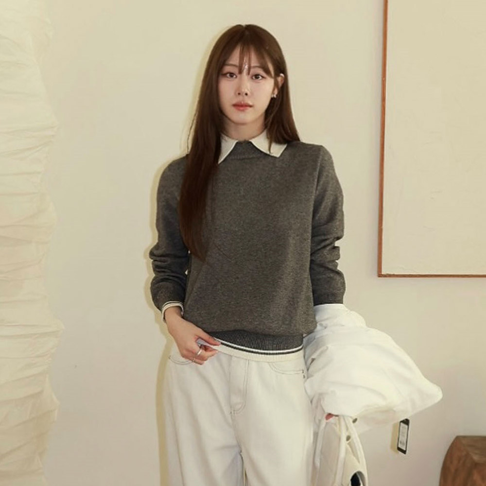 (더아이잗) 칼라 레이어드 풀오버 니트 ISSP1PO107