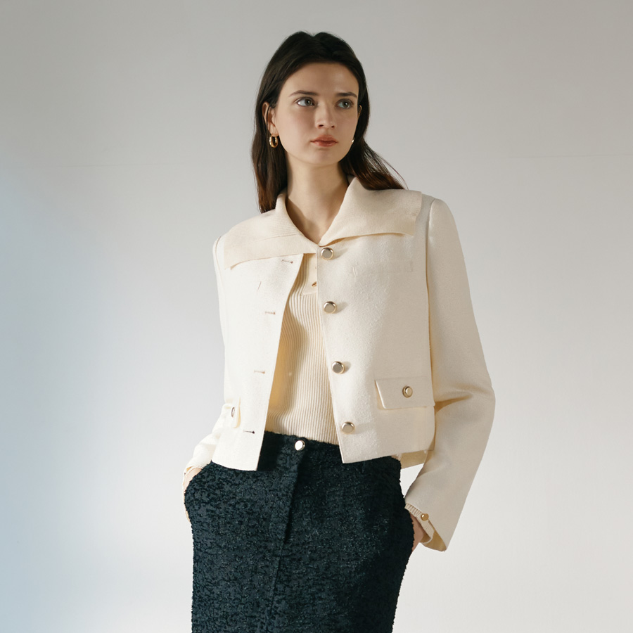 (더아이잗) 트위드 라운드넥 크롭 재킷 ISSP0JK505