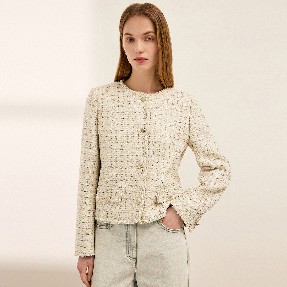클래식 라운드넥 트위드 자켓_SWWJKQ12060