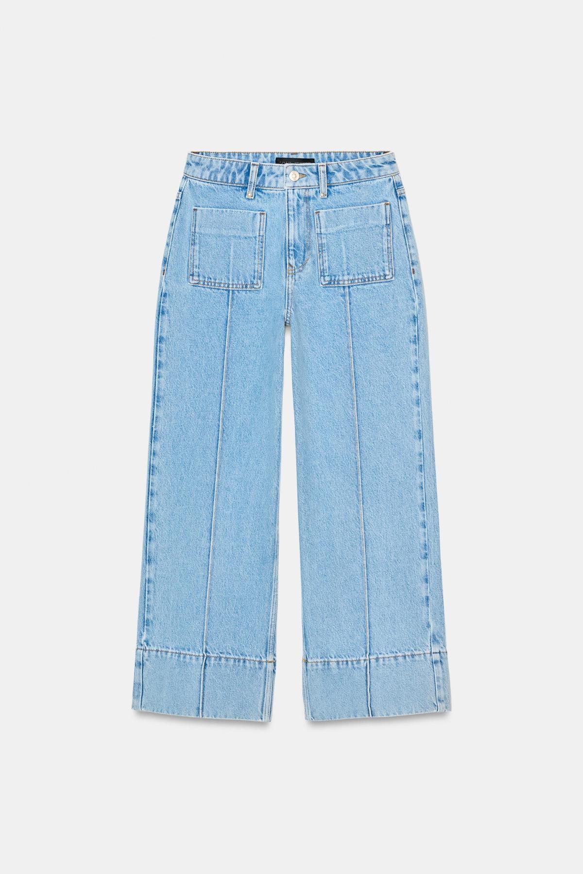 자라 하이웨이스트 와이드핏 크롭 데님 팬츠 5862/051/406 LIGHT BLUE