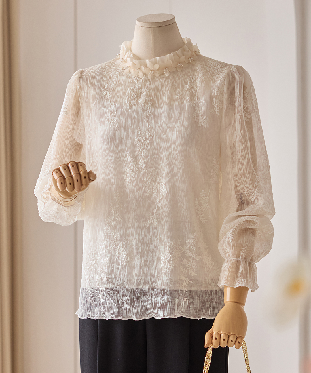 [커스텀에이블] 플라워 자수 진주 블라우스_T2602BL016A