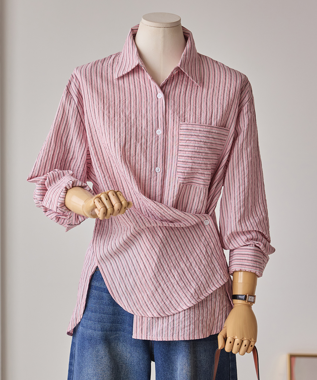 [커스텀에이블] 투웨이 랩 스트라이프 셔츠_T2602BL020A