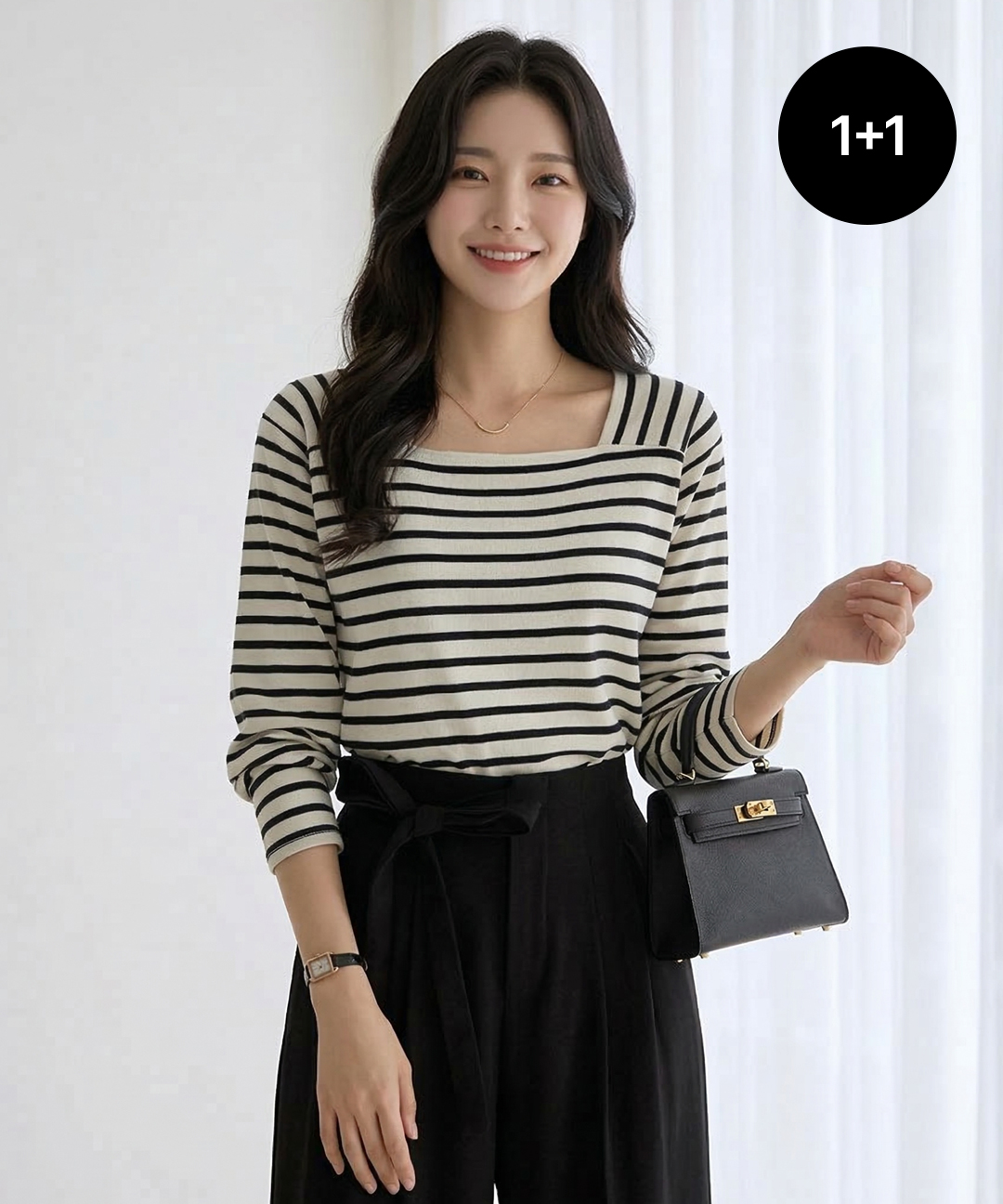 [커스텀에이블] [1+1]스퀘어넥 스트라이프 티셔츠_T2602CO004A