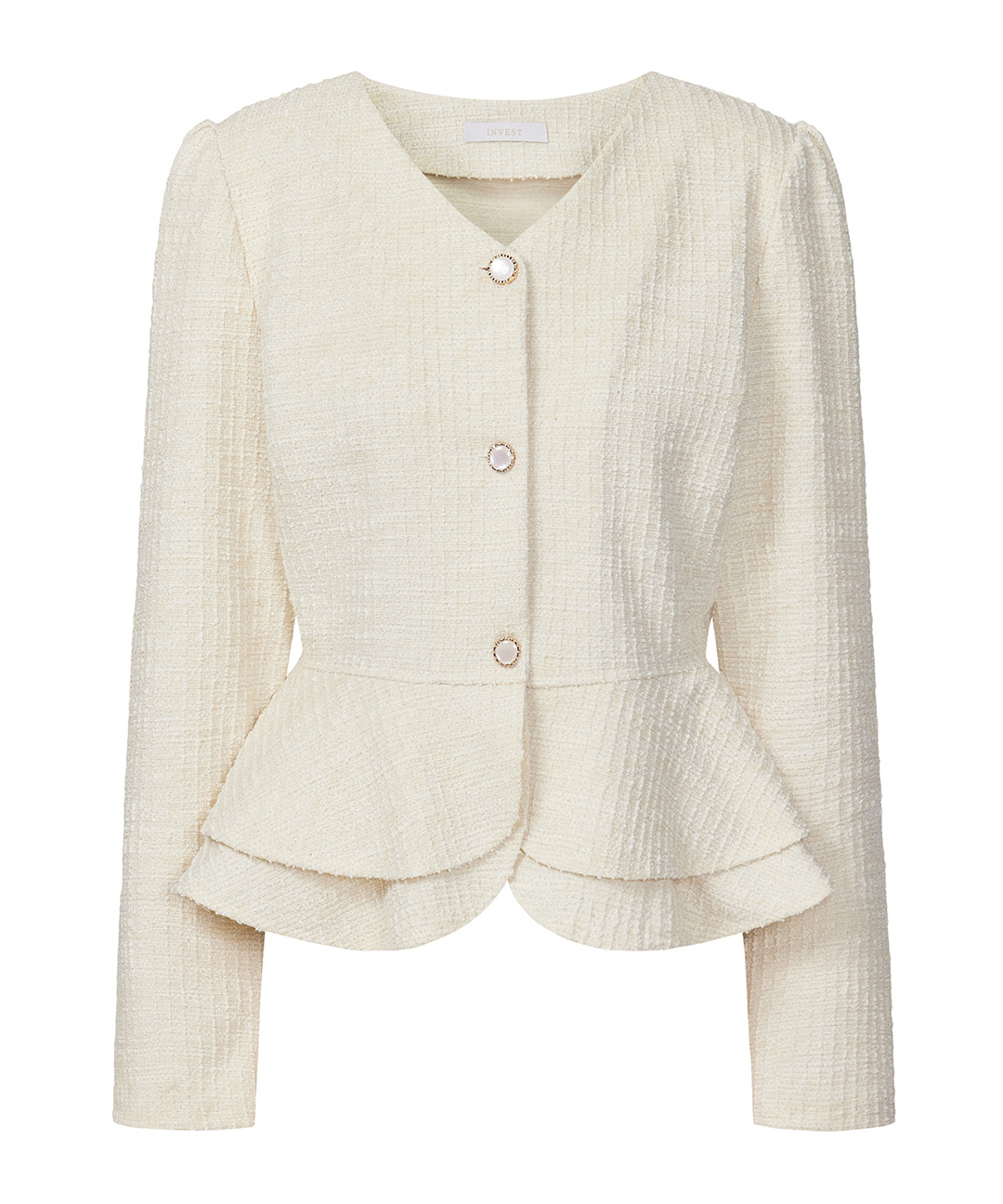 [인베스트] V넥 트위드 러플 블라우스_IN6S1BL5181