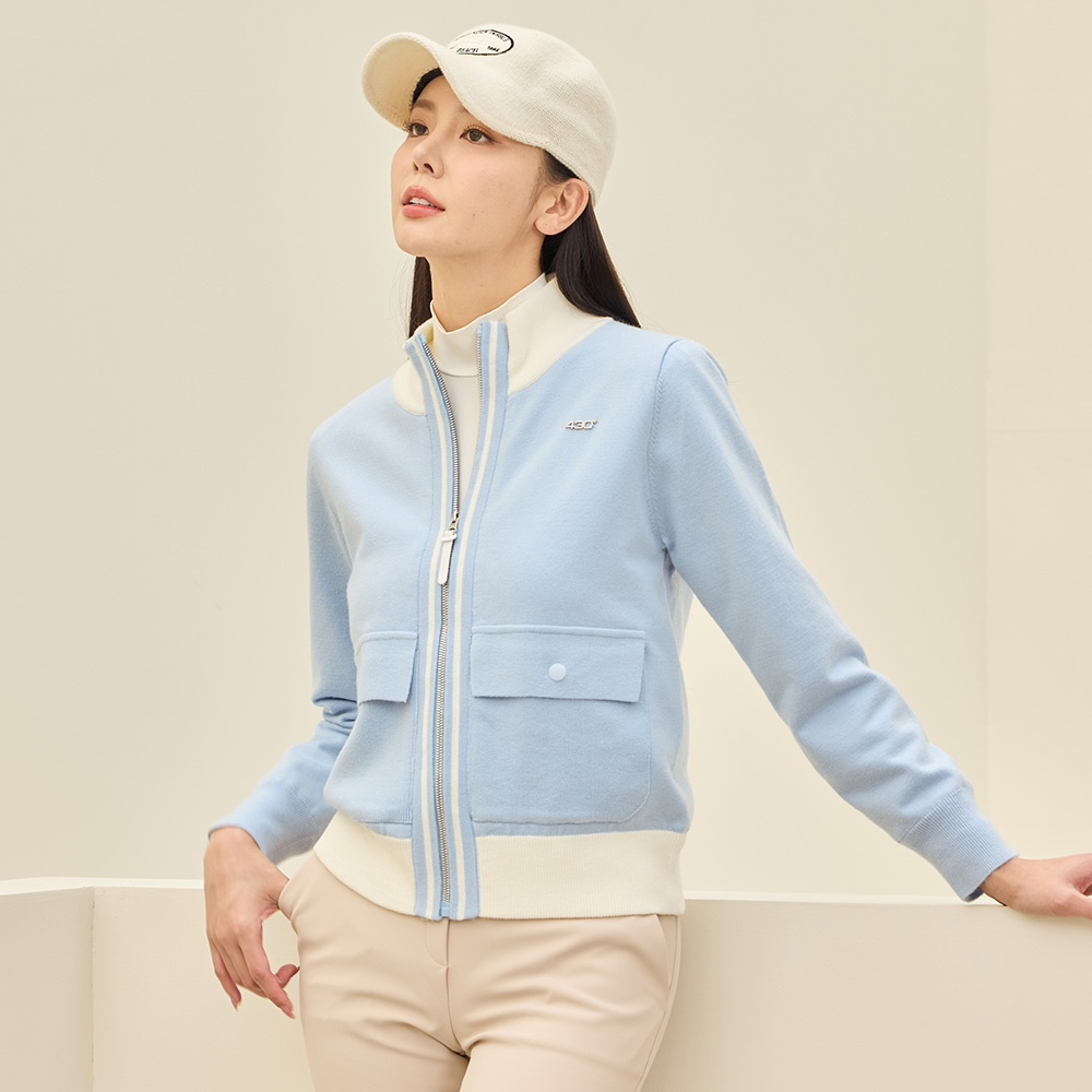 제이투제이 여성골프웨어 플랩포켓 방풍 니트자켓