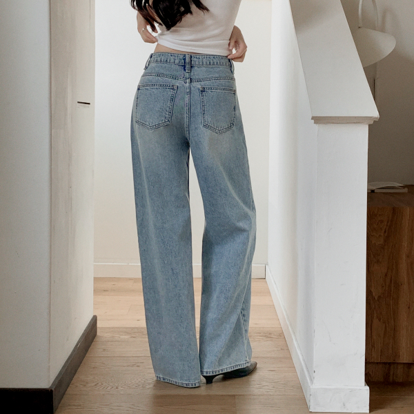 [프롬리리컬] (S-XL/봄만능코디템/탄탄난스판) 러비드 캣브러쉬 워싱 롱 와이드 봄 데님 팬츠 ps5606