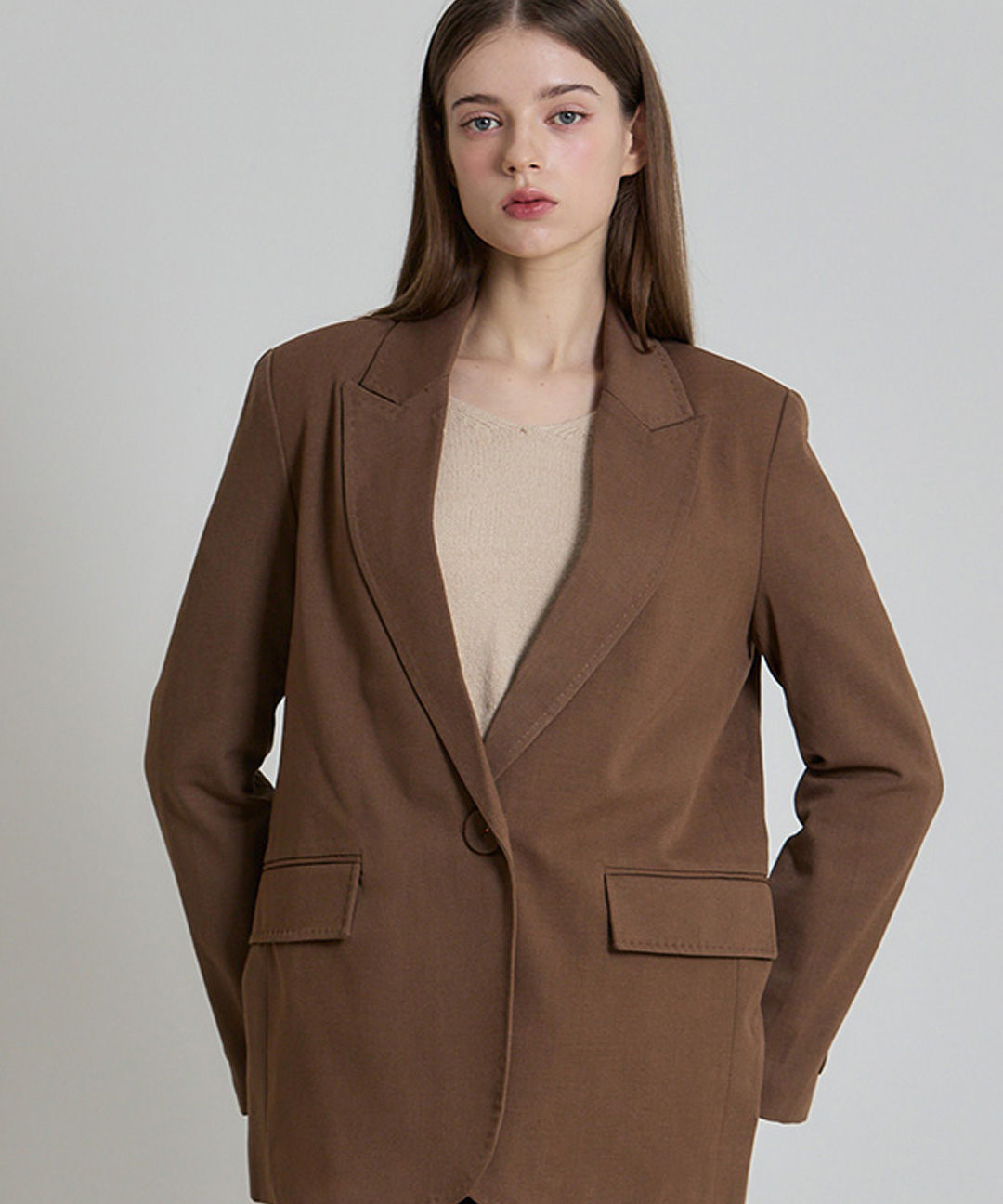 [르오트(LeOT)] 원버튼 여밈 울 블렌디드 보이핏 자켓
