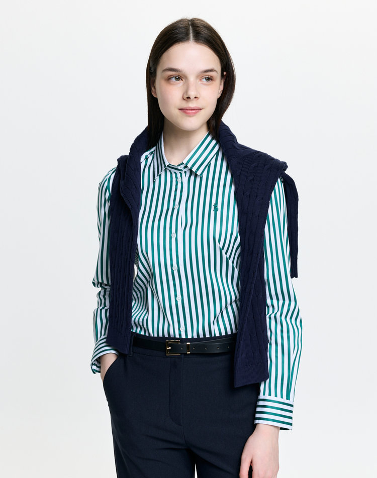 [26SS 헤지스 여성]옥스포드 스트라이프 셔츠 그린_HSSH6AC14E2