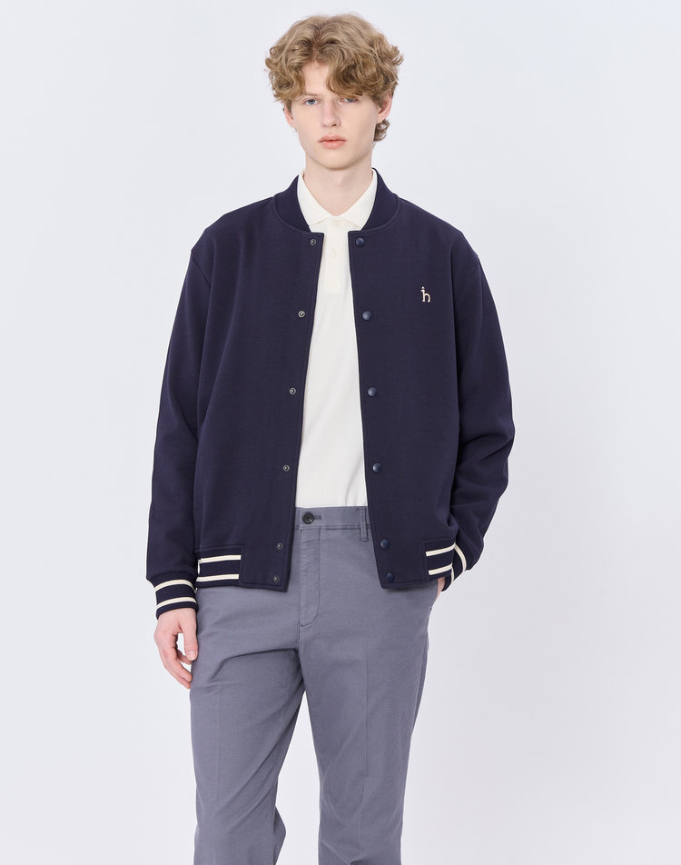 [헤지스 남성]네이비 라인배색 면혼방 바시티자켓_WHTS5A310N2