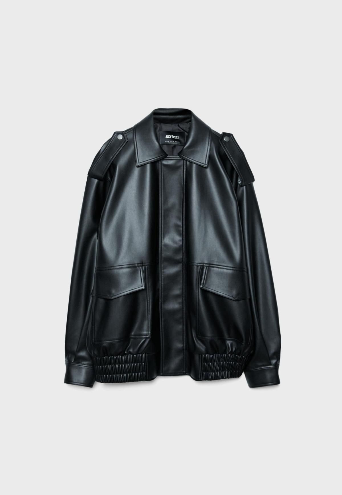 스트라디바리우스 오버사이즈 레더 이펙트 바이커 재킷 7614/100/001 BLACK