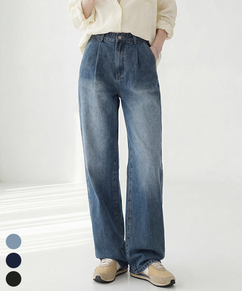 [딱맞진No.42] 원턱 브러쉬워싱 와이드 데님 팬츠_265131