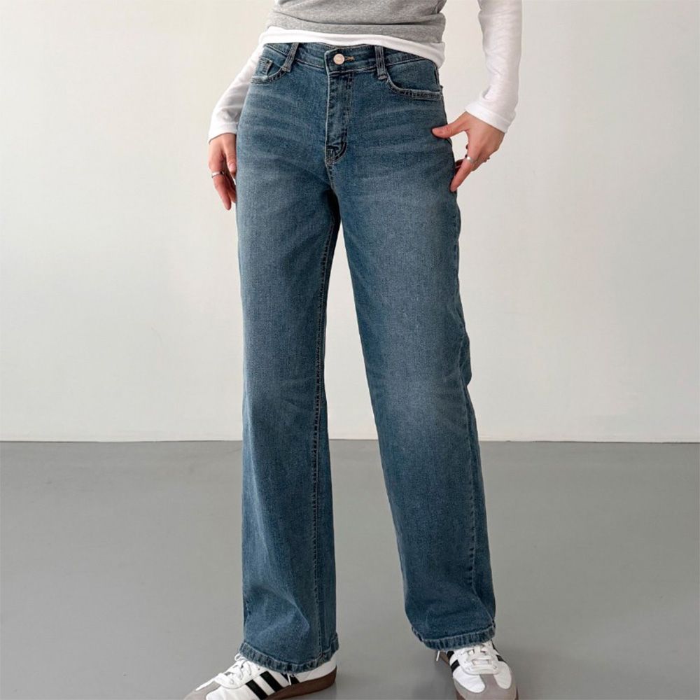 [옷자락] 여자 빅사이즈 데일리룩 속밴딩 일자핏 스판 청바지