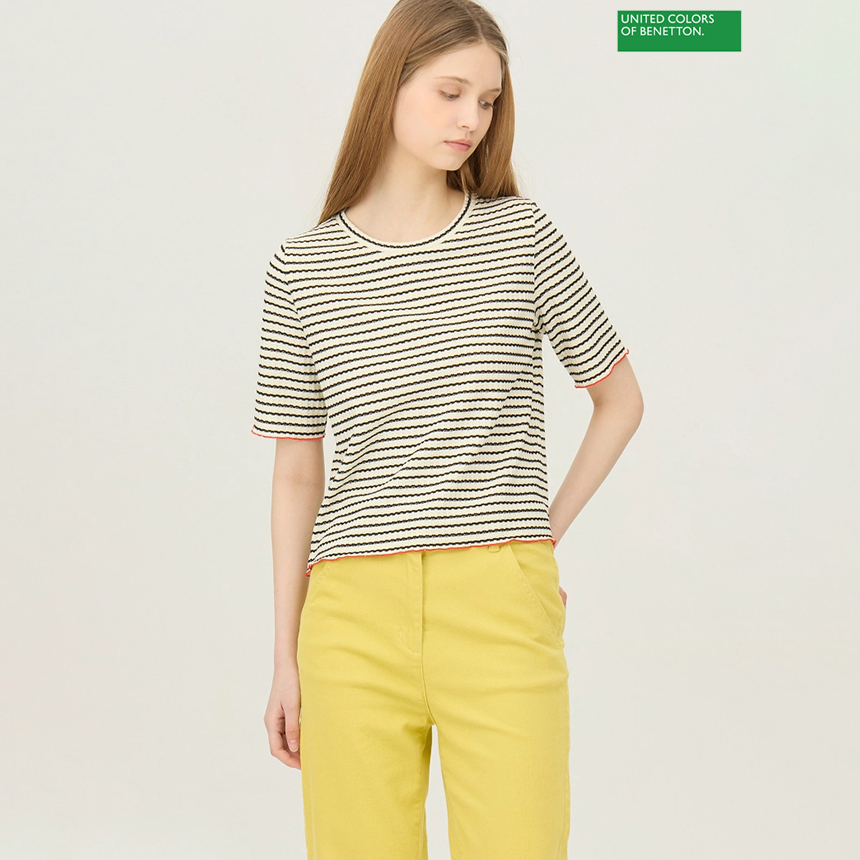 베네통 스트라이프 짜임 니팅 티셔츠 BATSA6611