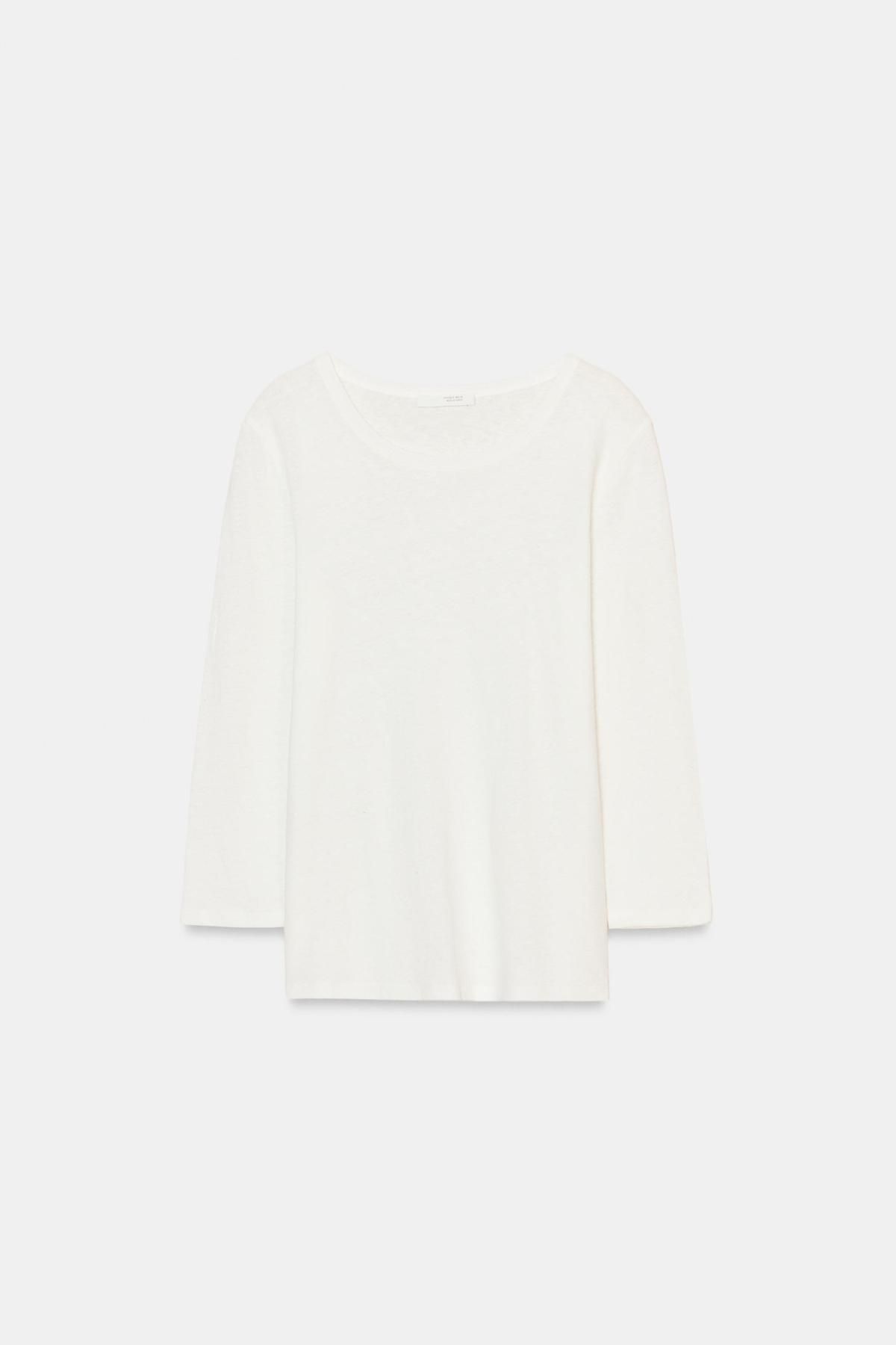 자라 린넨 혼방 라운드넥 7부 티셔츠 화이트 1131/304/251 OYSTER-WHITE